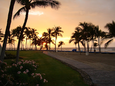 Day 1 of the trip, Thursday, was a very long travel day. My girlfriend and I arrived at Baltimore-Washington International Airport at 5:30 a.m. ET after spending the night at a Red Roof Inn near the airport. (Normally, I prefer properties such as Marriott, but $200 was way too much for an airport hotel and I “settled” for the $69 Red Roof Inn.) After changing planes twice (Houston and Honolulu) , renting a convertible at Kona International Airport and then driving through rush-hour and construction traffic in Kona, we made it to our hotel around 6:30 p.m. HT (11:30 p.m. ET). We are staying at the Royal Kona Resort (where the wedding will be held on Monday afternoon on the beach) and the balcony from our hotel room overlooks the Pacific Ocean.