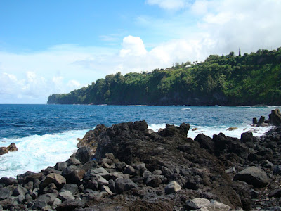 Our next stop was Laupahoehoe Point Beach Park, which is one of our favorite parks to date. In 1946, a tsunami wiped out the community living in this picturesque spot. In 1988, the Army Corps of Engineers constructed a harbor with concrete barriers. There is no real beach at this site, but rather a boat launch and lava rocks. However, the water is a brilliant blue as you will ee from the pictures.